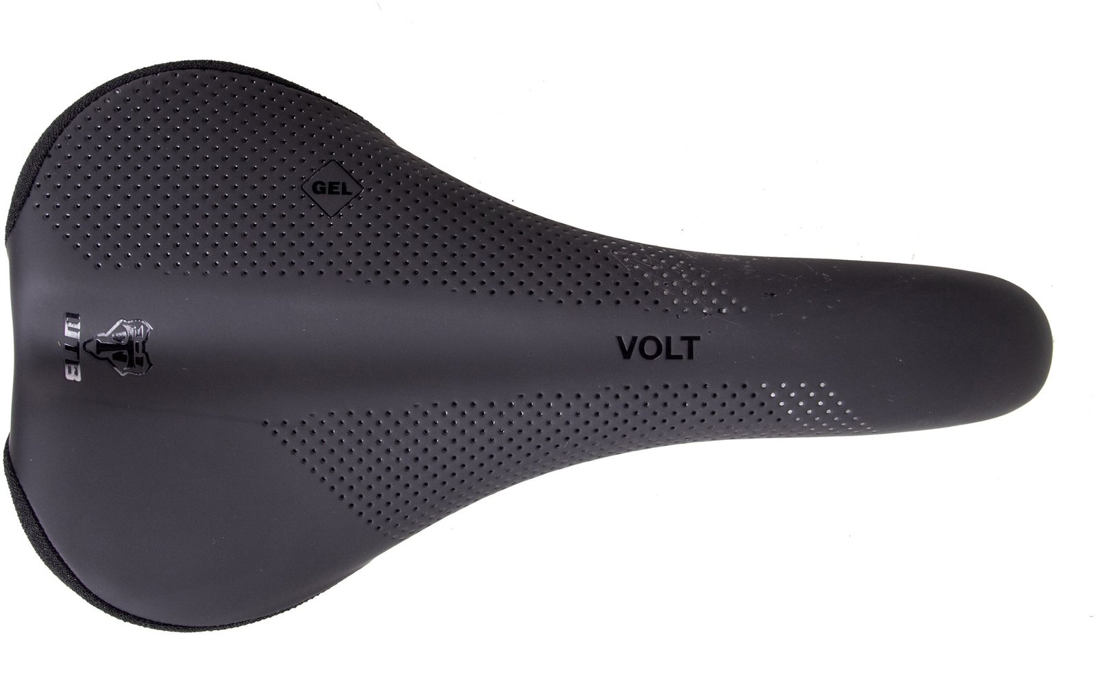 Shaped for speed and comfort off-road, the WTB Volt Gel chromoly-railed saddle features medium-thickness padding, a gentle drop to the nose and an upward-curved tail to push against while pedaling.